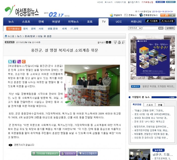 2/16일 옹진군청 위문 방문 관련 기사입니다. 밑에 그림 클릭하시면 크게 보실 수 있습니다^^